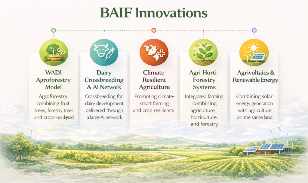 BAIF Development Research Foundation is a Pune-based non-governmental organization founded in 1967 with a long history of promoting sustainable rural development across India. It works to improve livelihoods and socio-economic well-being in rural communities by integrating climate-resilient agriculture, natural resource management, livestock development, agri-horti-forestry, and other income-generating activities. The foundation’s mission focuses on creating opportunities for gainful self-employment and sustainable livelihoods, especially for disadvantaged rural families, through appropriate technology, capacity building, extension services, and community participation. Its multidisciplinary programmes span multiple states and address issues such as food security, gender equity, environmental sustainability, and economic inclusion in rural areas.
