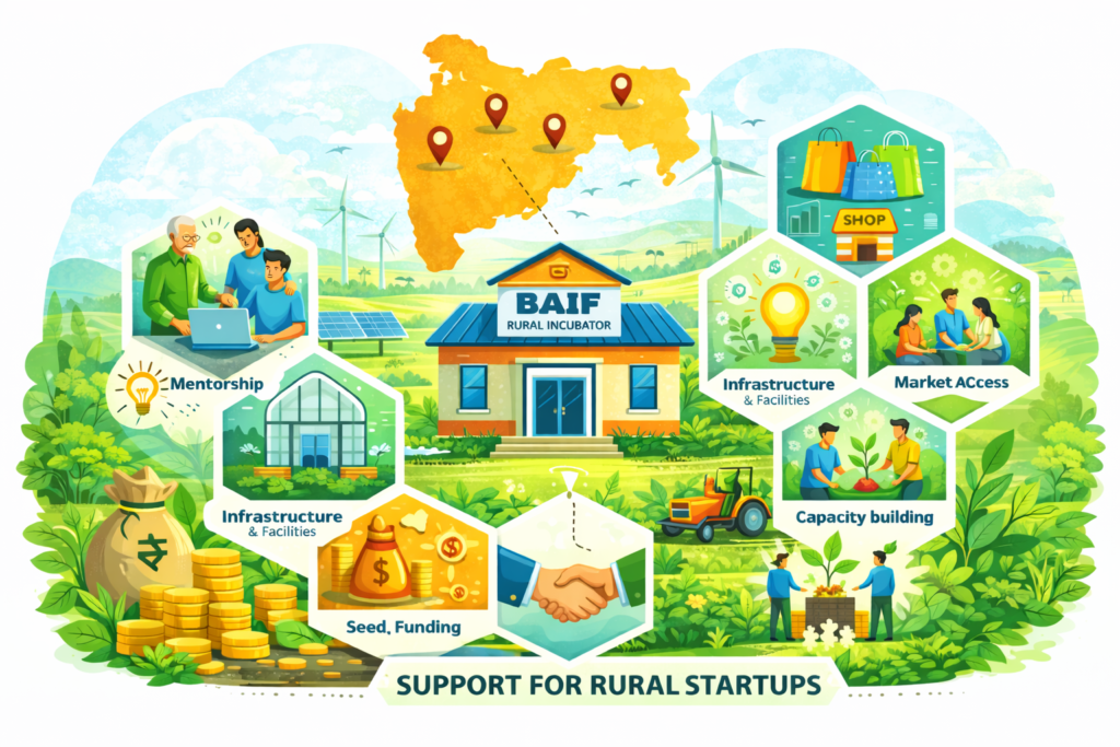 To identify, nurture, and accelerate high-potential, rural-focused startups by providing comprehensive support, including mentorship, infrastructure, seed funding, market access, and capacity building, leveraging BAIF‘s deep expertise and network to drive socio-economic and environmental impact in rural Maharashtra.